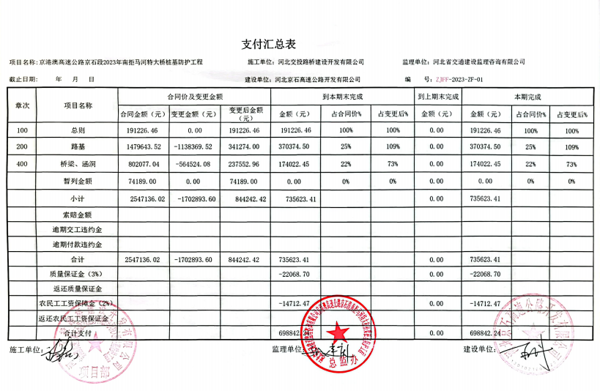 京港澳高速公路京石段南拒马河特大桥桩基防护工程支付证书南拒马支付证书