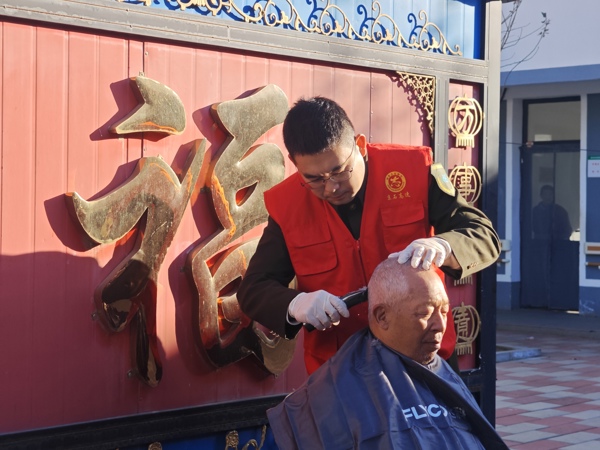 活动中,志愿者们不仅带来了米面、水果、牛奶等慰问品,更送上了家人般的陪伴与牵挂。志愿者们俯身与老人促膝谈心,细致询问健康状况;拿起工具洒扫庭院,维护舒适的生活环境;为有需要的老人义务理发,让他们精神焕发。针对当前老年人容易遭遇的AI诈骗等新型诈骗手段,志愿者还结合身边实例,用通俗易懂的语言讲解防范知识,帮助老人提升安全意识,守护好自身的财产安全。