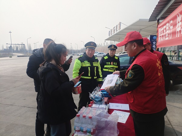 此次联建共建活动紧扣春运货运出行需求,聚焦货运司乘急难愁盼问题,将文明服务贯穿活动全过程,双方党员主动亮身份、践初心,组建党员志愿服务队,在收费站广场设置文明服务台。志愿者们坚守文明服务标准,主动上前问候司乘、贴心提供热水补给、新春小礼品、安全通行提示卡、路况咨询等便民服务,细致解答通行政策、春运安全通行等相关疑问,用真诚服务拉近与司乘距离,以文明举措展现站区风采,让春运旅途更有温度。