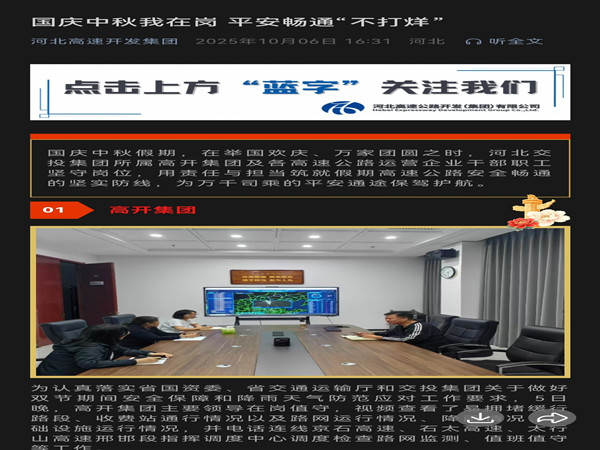 【河北高速开发集团】国庆中秋我在岗 平安畅通“不打烊”