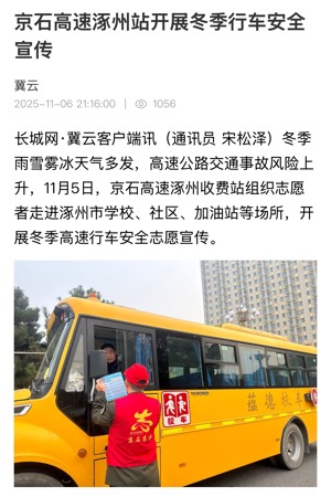 【长城网冀云】京石高速涿州站开展冬季行车安全宣传