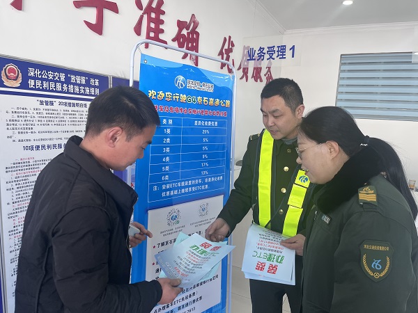 在车管所业务大厅内,引流小组精心布置了宣传展板,在显眼位置向前来办理业务的司机详细解读了货车差异化收费优惠政策,以及安装ETC后所能享受的通行费折扣、降低运输成本、提高经济效益、快速便捷通行等多重优势。同时,小组成员还开展了现场办理服务,直接面向司机群体,有效解决了ETC办理难、跑办繁琐等问题,赢得了现场司机的广泛赞誉。
