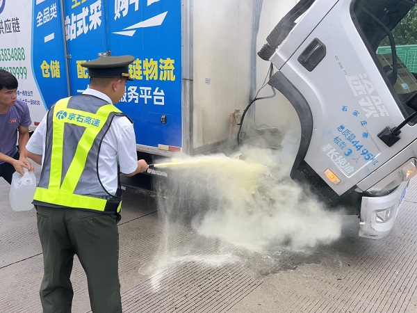 8月24日,一辆小货车行驶至高碑店站ETC车道下路时,车头部位突然冒出浓烟。当班人员瞬间警觉,大声呼喊示意司机停车,快速拦截车辆。当班值班站长刘伟第一时间将起火车辆疏导至安全区域,并安排班组人员疏导其他下路车辆,引导其他车辆远离起火区域,避免次生事故。