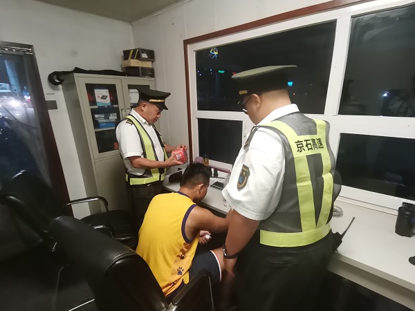 9月7日凌晨1时许,高碑店收费站收费班长滕海涛在收费站广场巡查时,发现一名少年独自在车道旁徘徊。该少年言语模糊,无法正常沟通,且不时靠近过往车辆,存在极大的安全隐患。滕海涛立即上前,轻声安抚少年的情绪,并将其带至便民服务亭,准备好热水和方便面放在少年面前的桌子上,以缓解少年的紧张与不安。同时,滕海涛召集同事一同寻找能确认少年身份的线索。