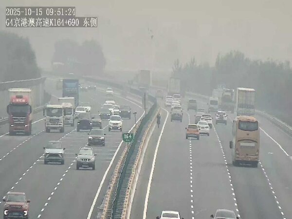 2025年10月15日9时50分,智慧调度中心接到高速交警电话通知,京石高速石家庄方向K164处有行人,高速行车速度很快,行人在车道走动非常危险,极易发生交通事故。