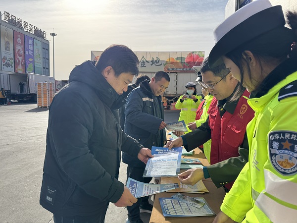 为切实保障首衡市场及周边道路通行安全,有效提升市场商户、货运司机等群体的交通安全意识,近日,高碑店收费站联合高速交警涿州大队,共同走进首衡农产品批发市场,开展“安全驾驶不松懈,畅通出行护民生”主题交通安全宣传活动。