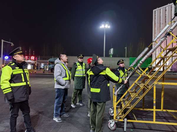 春节将至,生鲜农产品运输需求急剧增加,高碑店收费站的绿通车流量大幅攀升。1月31日,为应对绿通车流高峰,防范假绿通车辆钻保畅漏洞,公司营运部紧急抽调8名业务骨干组成应急保障分队对高碑店站进行支援。营运部经理郭琦亲临验货一线进行督导,现场指导保畅工作,为一线提供有力支持。
