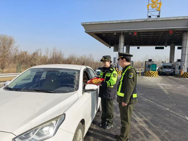 工作人员在收费广场、服务岗点,为过往司乘送上精心准备的春联、福字、节日礼包等实物礼品,将新春祝福与高速温情送到司乘手中。一笔笔吉祥春联、一份份暖心礼包,不仅烘托出浓郁节日氛围,更让司乘在旅途之中感受到实实在在的关怀与便利。