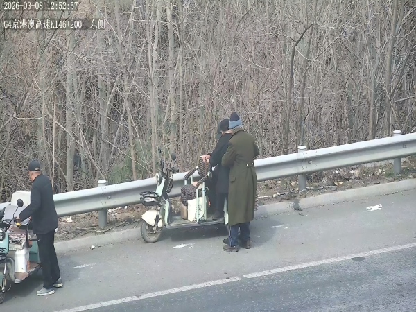 2026年3月8日12时50分,信息分中心监控员在开展日常视频巡查时,于K146处石家庄方向发现险情。有四位老人驾驶两辆非机动车,违规驶入高速公路应急车道。