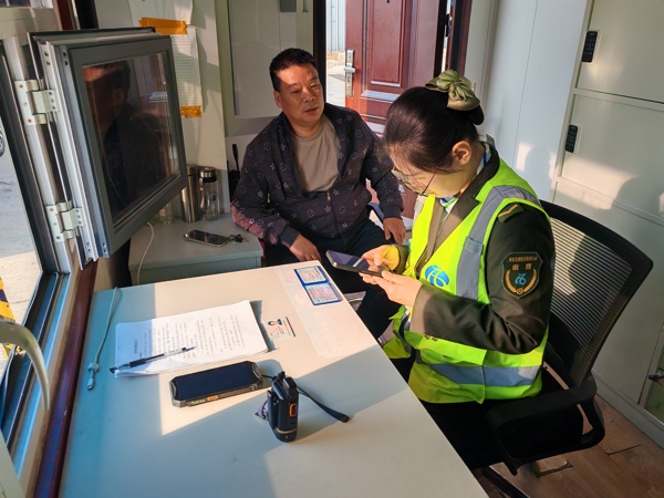 男士因年纪偏大,平日里不常使用智能手机,对线上办理进京证的操作流程完全不熟悉,面对电子化办理渠道一时不知所措。工作人员见状,立刻热情上前接待,耐心且细致地向他讲解进京证的办理条件、申请流程以及相关注意事项。考虑到该男士独立操作手机存在困难,工作人员主动提出全程协助其办理。