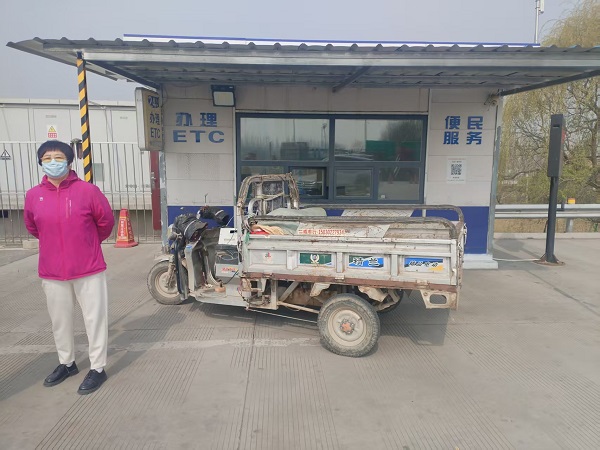 经细致了解,这位村民外出办事时不慎走错路线,误入高速公路管控区域,本想联系家人求助,可偏偏手机也电量耗尽关机,彻底联系不上家人,再加上电动三轮车骑行到收费站时彻底没电,双重困境让她一时手足无措,只能抱着试试看的心态向收费站工作人员求助。得知缘由后,李伟连忙上前安抚村民的紧张情绪,亲切说道:“大姐别急,电车没电、手机也没电都没关系,我们帮您充上电,给您提供个方便!”