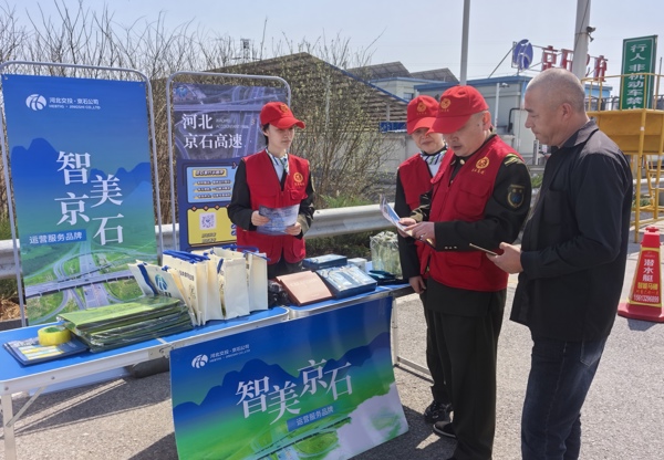 在站口显著位置设立便民服务台,身着统一红马甲的志愿者主动靠前,化身“出行贴心人”,全方位满足群众出行需求。服务台内物资齐全、备货充足,不仅免费提供热水、矿泉水、修车工具等便民物品,还配备了行车安全知识手册、政策宣传页等资料,供过往司乘按需取用。活动现场,工作人员开展“冀交万里行”“京石易行”会员推广,大力宣传“智美京石”服务品牌,耐心解答ETC办理、路线指引等各类咨询,细致讲解高速行车安全注意事项,现场为有需求的司乘办理ETC激活业务,用专业服务破解出行难题。