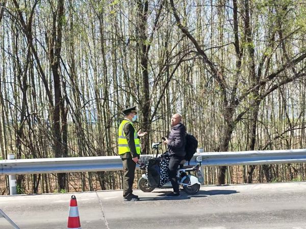 随后,刘增彬向其耐心讲解非机动车禁止驶入高速公路的相关规定,明确告知违规驶入的法律后果,同时结合高速行车实际,向其讲解驾驶电动自行车驶入高速的风险。了解到男士不熟悉周边路况,刘增彬对照地图,重新为其规划了一条安全、畅通的路线,并把每一个转弯节点都讲得清清楚楚。
