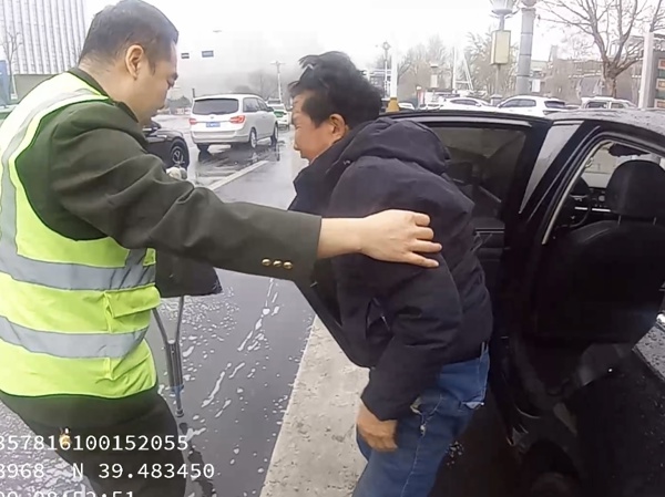 工作人员见状立即上前主动询问情况。经了解,老人身患腰椎间盘突出,行动不便,当日独自前往安国就医问诊。返程大巴仅能停靠收费站路口,无法直达家中。老人平时很少出门,不认得回家路线,也不会手机打车;加之家庭情况特殊,家人不便到站接应,无奈被困雨中、无处求助。