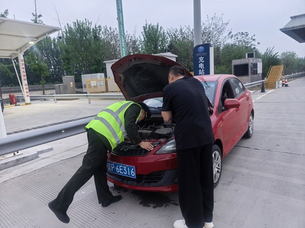 4月24日傍晚7时左右,一辆小型客车停靠在京石高速涿州收费站出站口,司机神情焦急,向现场工作人员求助,自述车辆水箱开裂漏水,想要就近寻找修理厂检修。