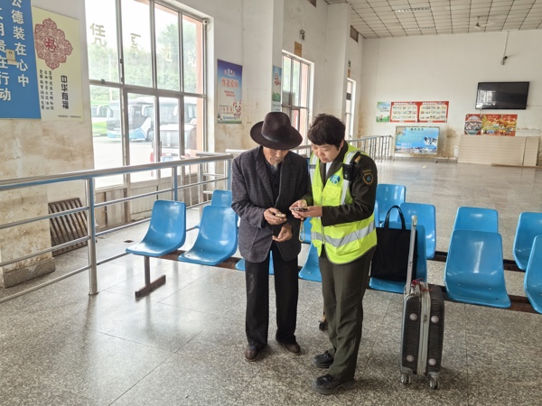 随后站值班领导迅速赶赴现场。因老人状态模糊、无法正常沟通,工作人员耐心引导其解锁手机,顺利联系上家属。鉴于涿州客运站路途较远,双方商定护送老人乘车前往保定,由家属到站接应。