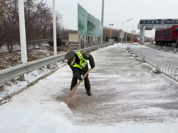 四九的风裹着雪粒,砸在保定南收费站的岗亭玻璃上,发出细碎的声响。时针刚过凌晨五点,值班站长申名博的棉帽檐已经结了层薄冰,他哈了口气搓搓手,目光扫过车道上的融雪剂撒布车——那是凌晨就出动的“开路先锋”,此刻轮辙印在雪地里拉出两道深褐色的轨迹,像给京石高速这根“动脉”提前通了暖。
