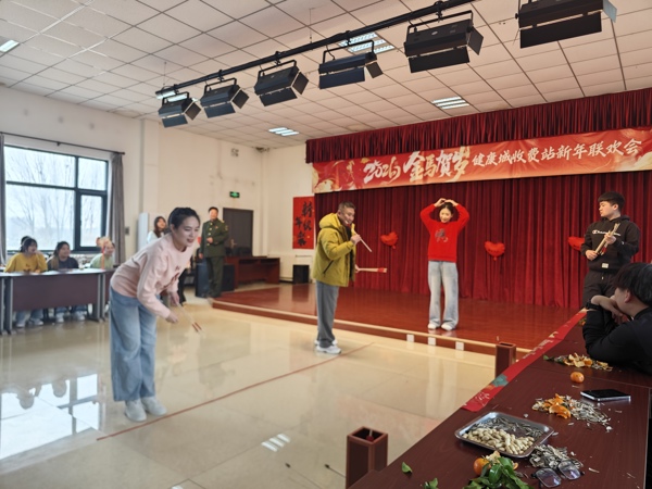 金马贺岁迎新春,欢声笑语聚真情。1月29日上午,在农历新年即将到来之际,健康城站多功能厅内张灯结彩、暖意融融,2026年新年联欢会在此热烈举行。全体干部职工欢聚一堂,在轻松愉快的氛围中共庆新春佳节,凝聚团队力量。
