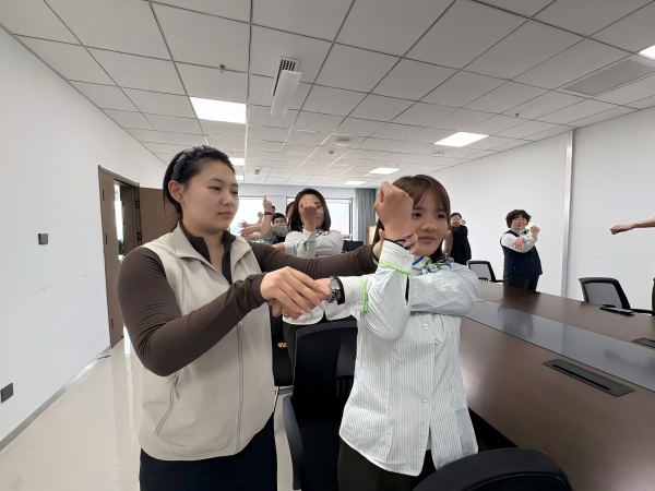 针对职工久坐办公易出现颈椎、腰椎不适的问题,智调中心精准对接职工需求,精心组织职场拉伸课,依托优质专业的拉伸教学视频,引导职工充分利用每日15分钟工间休息时间,开展针对性的工位拉伸训练。从颈部放松到腰部舒缓,从肩背拉伸到腿部活动,一系列简单易操作、高效实用的动作,让职工在工作间隙就能轻松缓解身体疲劳,有效改善久坐带来的不适,为职场健康保驾护航。