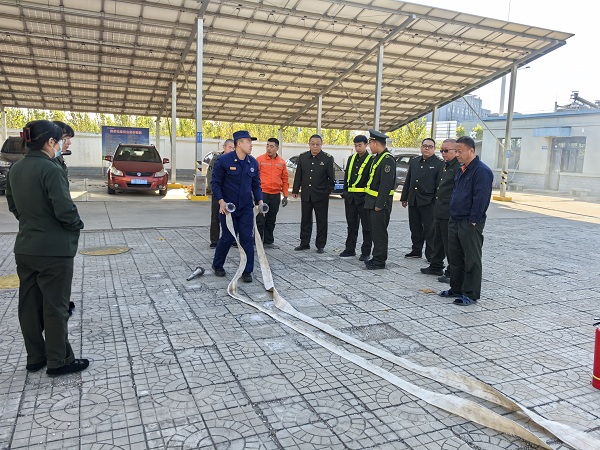 在院外实操现场,李教官亲自示范灭火器和消防水带的使用方法,从灭火器的正确提握、保险销拔除,到喷射角度调整;从消防水带的快速展开、接口连接,到水流控制技巧,每一个步骤都讲解细致、演示规范。参训员工踊跃参与实操体验,在教官的一对一指导下,逐一完成灭火器灭火、消防水带连接出水等实操训练,切实将理论知识转化为实战技能,有效提升了初期火灾扑救的熟练度和自信心。