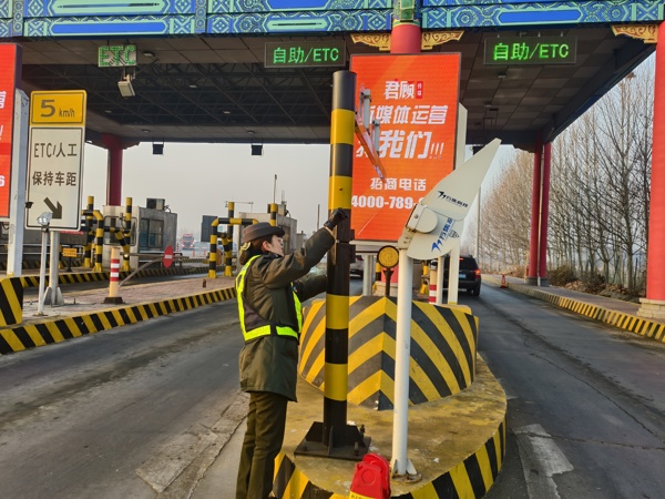 走出收费亭,收费广场的每一处细节都逃不过赵红静的眼睛:沿着通道走一圈,摸摸收费岛的岛头、摇摇防撞护栏,看有没有破损变形;仰头核对交通指示牌、限速标志,确认字迹清晰、支架牢固;连监控摄像头都要盯着实时画面看几眼,确保广场每个角落都在“视线”里,没半分盲区。